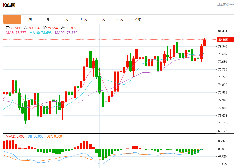 原油市场:截止北京时间21:20,美油上涨,现报80.379,涨幅0.99%。纽市盘前,原油价格向上反弹突破80.05水平,再次回到看涨通道,强化了在即将到来的交易中继续看涨趋势的预期,实现我们在80.95的下一个目标的道路是开放的,注意突破该目标将扩大原油涨势,达到82.60区域。