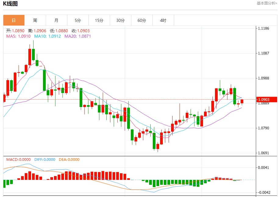 欧元/美元:截止北京时间21:27,欧元/美元上涨,现报1.0904,涨幅0.14%。纽市盘前,欧元兑美元价格正在测试第一个关键阻力1.0900,并保持其稳定性低于该水平,EMA55达到该水平以增加其强度,以保持今天的看跌趋势情景活跃,其目标是从突破1.0860开始向1.0765前进。