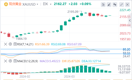 周二亚盘,黄金交投于2162.27附近。黄金的上升趋势仍然存在,尽管这种非收益金属仍紧盯着2,160-2,180美元区域。市场参与者将黄金/美元现货价格保持在上述区间的底部附近,这可能表明买家在掌控一切,并可能推动价格在2,200.00美元大关之前跌至年初至今(YTD)高点2,195.15美元。