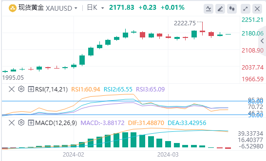 周二亚盘,黄金交投于2171.83附近。周一,经济事件清淡和美元需求放缓的情况下,金价维持震荡。金价目前震荡于 2175 美元附近,处在盘中高位 2180.52 美元附近。市场参与者正在重新评估过去两周主要央行的一系列决定后的形势,并试图弄清接下来的事件。总体而言,美元正走强,因为不断有迹象表明经济状况比通货膨胀和创纪录的利率可能体现的信号要好得多。