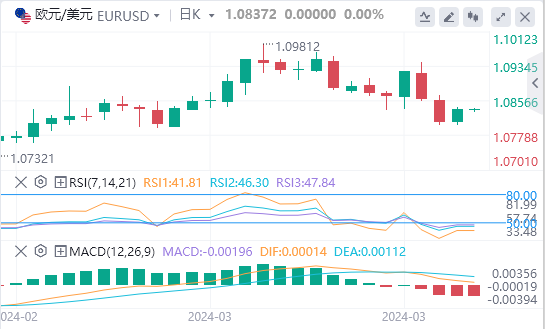 美元指数:截止发稿,美元指数交投于104.237附近。美元指数回落,交易员对经济报告做出反应。2月份新屋销售环比下降0.3%,而分析师普遍预期为+3%。达拉斯联储制造业指数从2月份的-11.3降至3月份的-14.4,而分析师预计该指数将改善至-8。技术面上,如果美元指数成功收于104水平下方,它将向最近的支撑位移动,即位于103.50-103.75区间。