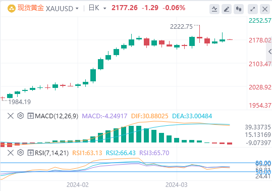 周三亚盘,黄金交投于2177.26附近。美国2月耐用品订单环比增长1.4%,超过预期的1.1%和1月的-0.9%。核心耐用品订单环比增长0.4%,高于市场预期的-0.3%,高于市场预期的0.4%。货币市场交易员预测,美联储将利率下调四分之一个百分点的可能性为70%,将联邦基金利率(FFR)设定为5.00%-5.25%。黄金交易员正在等待美联储首选的通胀指标——核心个人消费支出(PCE)物价指数的发布。预计2月份该指数将同比增长2.8%,月度数据预计将从0.4%放缓至0.3%。