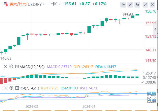 美元/日元突破155.00,达到155.50以上的数十年来最高水平。日本央行(BoJ)将在周五亚洲交易时段宣布货币政策决定。