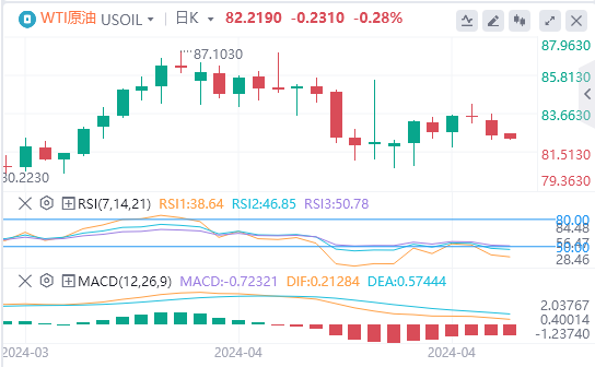 周二亚盘,原油交投于82.21附近。WTI原油随着交易员对以色列 - 哈马斯在开罗的停火谈判做出反应,正在失去优势。应该指出的是,之前的谈判没有成功,因此以色列和哈马斯是否会达成任何协议还有待观察。