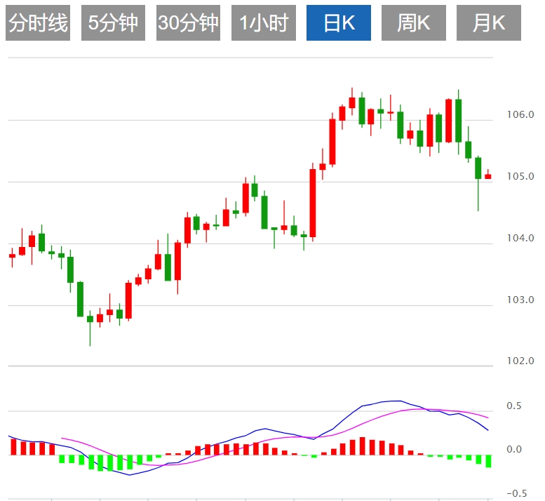 美元指数:截止发稿,美元指数现报105.12,日内上涨0.06%。美元指数在近期表现出连续下跌的趋势,跌至4月中旬的水平。这一变化与美国4月份非农就业数据的不佳表现密切相关,该数据显示仅增加了175,000个就业岗位,低于预期。此外,失业率保持在3.9%,尽管低于许多人的预期,但未能显著下降。这些经济指标的表现影响了投资者对美国经济前景的预期,进而对美元指数产生压力。技术上,美元指数的技术前景主要反映了看涨的主导地位和潜在的看跌反弹。相对强弱指数 (RSI) 在负值区域录得负斜率,暗示空头的抛售势头增强。然而,事实证明,无情的看跌推动是不够的,因为该货币对仍高于 100 天和 200 天简单移动平均线 (SMA)。此外,移动平均收敛散度 (MACD) 报告红柱上升,暗示空头正在取得进展。应该认真对待看跌信号,因为卖家将指数推低至 20 日均线下方。然而,长期SMA仍然是捍卫整体看涨前景的强大支撑。