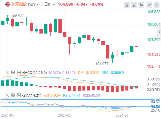 美元指数:截止发稿,美元指数交投于104.896附近。由于美联储会议纪要凸显政策制定者对很快降息的怀疑,美国国债收益率上升。收益率的上升提振了对美元的需求,反映出市场对美联储对通胀持谨慎立场的反应。技术面上,美元指数周三尾盘走高,在50日均线104.909的强势区间徘徊,表明近期强势正在增强。自上周晚些时候市场成功突破较长期的200日均线(目前为104.376)以来,潜在的看涨突破一直在发展。