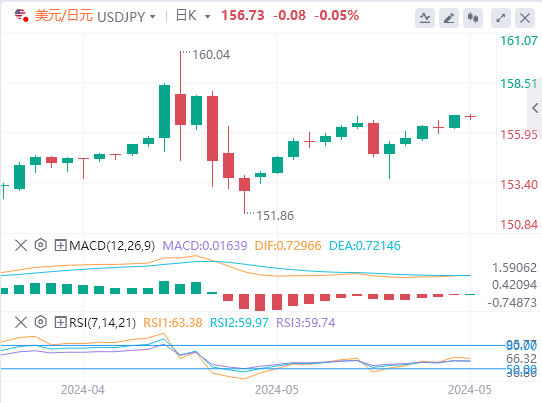 日本日文银行5月份制造业采购经理人指数从49.6升至50.5,服务业采购经理人指数从54.3回落至53.6。美元/日元在周三上涨0.4%后,失去了看涨势头,开始跌向156.50。