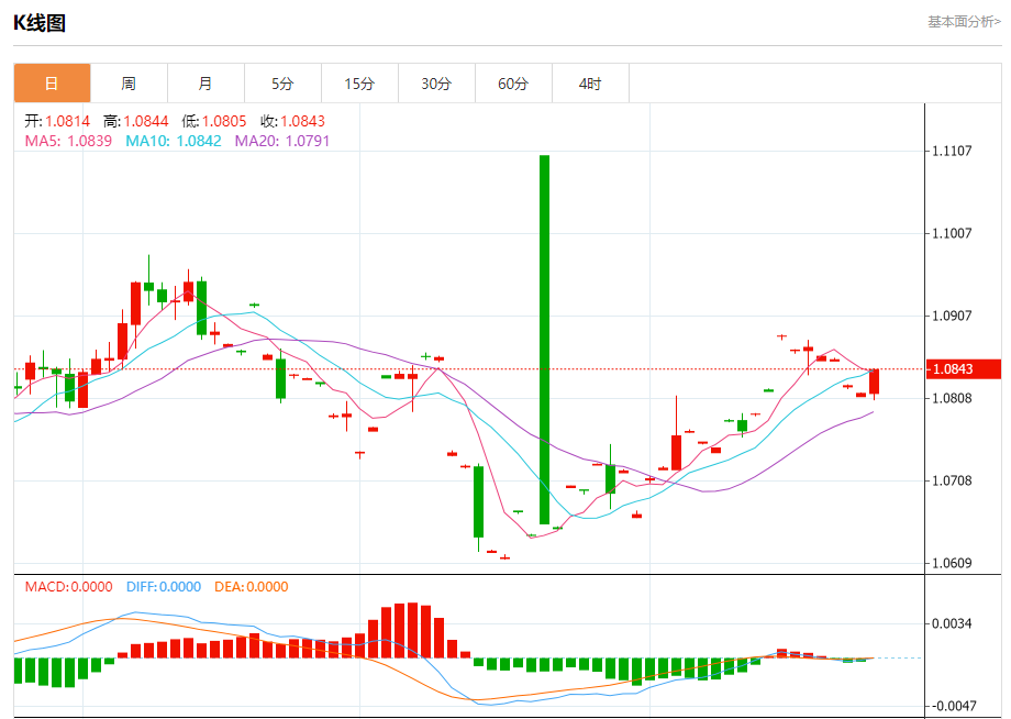 欧元/美元:截止北京时间20:22,欧元/美元上涨,现报1.0843,涨幅0.26%。纽市盘前,欧元兑美元价格显示出一些看涨倾向,以测试对价格形成较小阻力的EMA50,等待恢复负面交易以实现我们从1.0795美元开始并在突破前一水平后延伸至1.0714美元的目标。