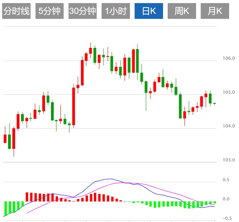 美元指数:截止发稿,美元指数现报104.73,日内下跌0.01%。强劲的美国经济数据和美联储官员的鹰派言论可能会引发对今年宽松周期推迟的猜测。根据CME FedWatch工具,投资者预计美联储9月降息的可能性为53%,低于一周前的64%。投资者正等待将于周四公布的美国第一季度国内生产总值(GDP)年率初值。预计第一季度GDP将从之前的1.6%增长1.5%。更强劲的数据可能会在短期内提振美元。技术上,美元指数的技术前景喜忧参半。相对强弱指数 (RSI) 在负值区域内向下倾斜,暗示抛售势头正在进行中。这种负斜率意味着空头在短期内占据上风。移动平均收敛散度 (MACD) 显示平坦的红色条,表示稳定的买盘压力,为看跌叙事增添了更多色彩。