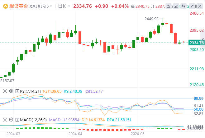 周一亚盘,黄金交投于2334.76附近。黄金在上周初创下2,450美元的历史新高后,上演了深度修正,并在周三跌破2,400美元后延续了跌势。美联储(Fed)政策制定者的评论和定于下周公布的美国4月份个人消费支出(PCE)物价指数数据可能会影响黄金的价格走势。
