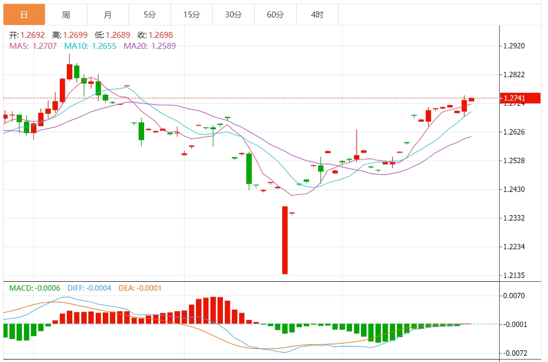 截止发稿,英镑/美元交投于1.2740附近,日内上涨0.05%。英镑/美元的上涨可归因于风险偏好情绪,尽管对美联储降息的预期减弱。此外,英国的年通胀率已经放缓,接近英格兰银行(BoE)2%的目标。这种放缓缓和了投资者对6月降息的预期,可能会提振对英镑(GBP)的支撑。值得注意的是,英国市场将因春季银行假期而休市,美国市场将因周一阵亡将士纪念日银行假期而休市。