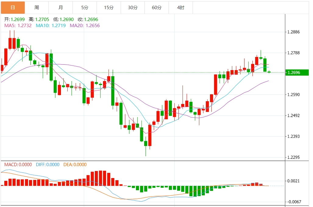 英镑兑美元震荡走低至1.2695。 英镑兑美元的跌势受到美元走强的支撑,因为美债收益率上升,市场对美联储(FED)9月降息的预期降低。在英镑方面,由于英国通胀前景疲软,越来越多的投资者开始猜测英国央行(BOE)将在8月的会议启动降息,这对英镑构成了压力。 国际货币基金组织(IMF)预计英国央行将降息两到三次。 在英国没有重要经济数据公布的情况下,市场维持观望大选选情可能会影响英镑(GBP)走势。 市场担忧英国政治形势不确定,可能会削弱英镑,并在短线限制英镑/美元上行空间。