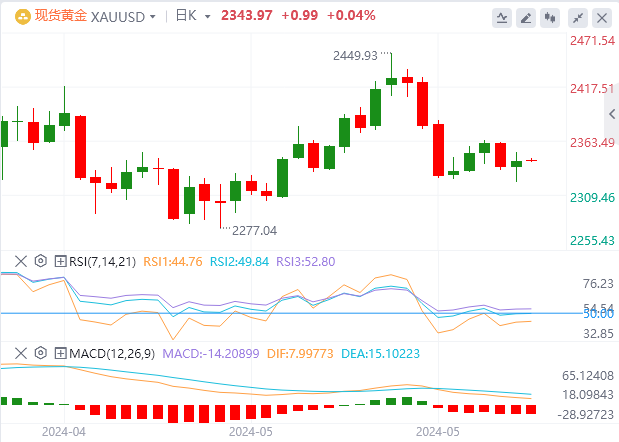 周五亚盘,黄金交投于2343.97附近。美国经济增速低于去年第四季度,表明美联储设定的借贷成本上升正在对经济造成影响。与此同时,美国劳工部透露,申请失业救济金的人数有所增加。纽约联储主席约翰·威廉姆斯(JohnWilliams)登上了头条新闻。他表示,货币政策处于有利地位,通胀过高,他并不感到降息的紧迫性。他补充说,通胀率将在2026年初达到美联储2%的目标。本周,交易员预计4月份个人消费支出(PCE)价格指数将公布,这是美联储首选的通胀指标。核心PCE数据预计同比增长2.8%,而整体PCE预计环比增长0.3%。