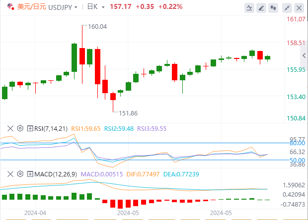 美元/日元周四下跌超过0.5%,周五早盘在157.00附近进入盘整阶段。日本数据显示,东京消费者物价指数从4月份的1.8%攀升至5月份的2.2%。