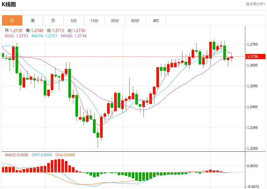 英镑/美元:截止北京时间20:26,英镑/美元上涨,现报1.2737,涨幅0.05%。纽市盘前,GBPUSD价格显示出对新的潜在测试1.2700美元水平的轻微看跌倾向,只要价格高于这一水平,我们的看涨观点今天就仍然有效,因为突破这一水平将迫使价格遭受盘中损失达到1.2580美元,而价格需要突破1.2750美元才能加强反弹至1.2800美元水平的机会,然后是1.2893美元水平作为下一个主要目标。