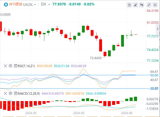 周四亚盘,原油交投于77.93附近。美国能源信息署(EIA)报告称,截至6月7日当周,美国原油库存变化再次意外增加,在前一周的123.3万桶的基础上增加了373万桶,抵消了预期的-155万桶的收缩。