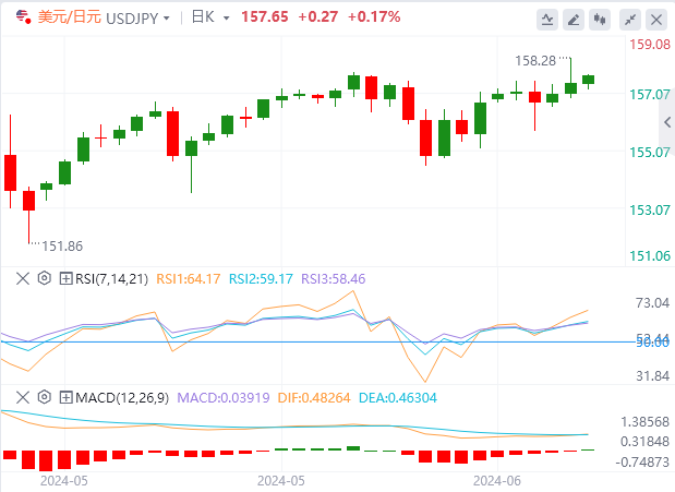 与此同时,美元对日元持稳在157.45,周五在日本央行宣布开始缩减债券购买的时间比许多人预期的稍晚时,美元/日元一度突破158.00。