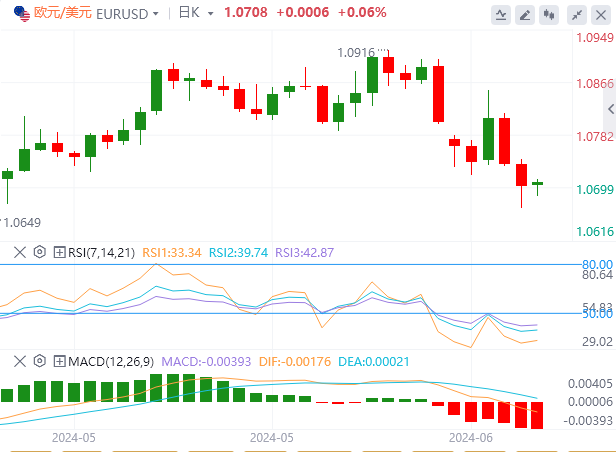 欧元因此维持在1.0703美元,在上周下跌0.9%後触及六周低点1.06678美元。