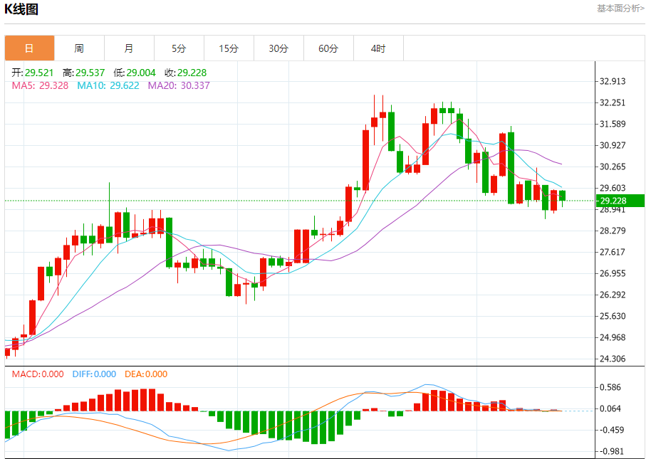 现货白银:截止北京时间20:21,现货白银下跌,现报29.250,跌幅0.93%。纽市盘前,白银价格保持稳定在29.30美元水平以下,以保持今天的熊市趋势,由随机消极因素推动,等待走向28.55美元,这代表下一个修正水平,提醒你熊市的持续需要持有低于29.30美元,最重要的是低于30.06美元。