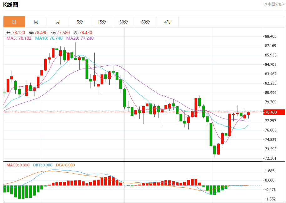 原油市场:截止北京时间20:21,美油上涨,现报78.410,涨幅0.47%。纽市盘前,原油价格以明显的利好交易,以接近测试看跌的三角旗的阻力线,正如我们今天早上提到的,价格需要超过78.95美元,以确认恢复目标为79.55美元的牛市,并在超过前一水平后延伸至81.50美元。