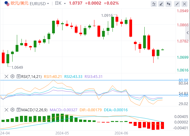 欧元:截止发稿,欧元/美元徘徊于1.0737附近。欧元/美元上周一上涨,收报1.0735,涨幅0.30%。欧洲央行首席经济学家菲利普-莱恩(PhilipLane)表示,欧洲央行此前的加息对欧元区通胀的全面影响尚未体现。莱恩还表示,目前欧元区债券市场(尤其是法国)的动荡并非混乱,这意味着欧洲央行没有必要采取行动。莱恩强调,今年服务业通胀势头回落对于验证欧洲央行的“通缩”论十分重要,同时暗示在7月份的会议之前,鲜有新数据可供参考。尽管通胀有些“杂音”,但相信明年通胀将重返2%的目标。技术面上,如果欧元/美元回升至1.0725上方,它将向阻力位1.0785-1.0800移动。