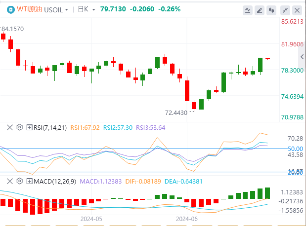 技术面:WTI油价攀升至处在在78.81美元的200日指数移动均线(EMA),接近80.00美元关口附近的区间,延续自近期数月震荡区间低位72.45美元反弹的趋势。