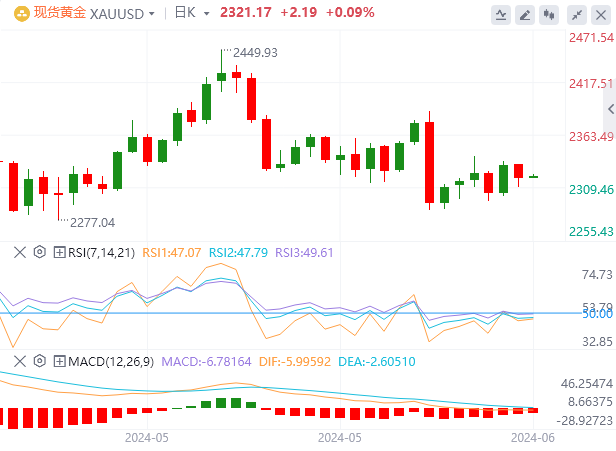 技术面:由于头肩图形态保持不变,黄金价格呈中性至下行偏向,暗示黄金可能跌破2,200美元关口。动能显示,随着相对强弱指数(RSI)进一步跌入看跌区域,卖家正在积聚动力,为进一步下跌打开了大门。如果黄金跌破2,300美元,第一个支撑位将是5月3日的低点2,277美元,然后是3月21日的高点2,222美元。进一步的损失在下面,因为卖家将关注头肩图形态目标从2,170美元到2,160美元。