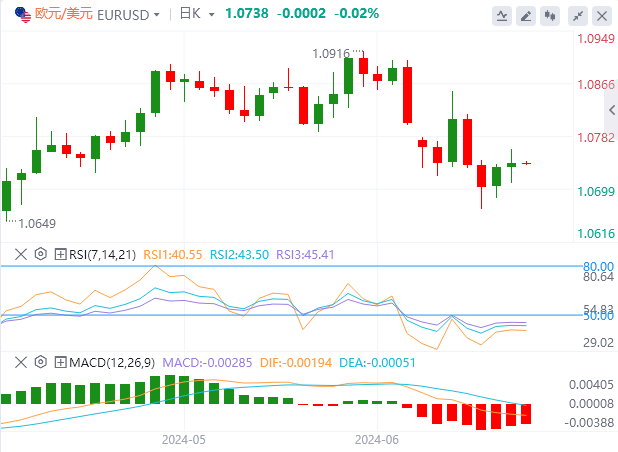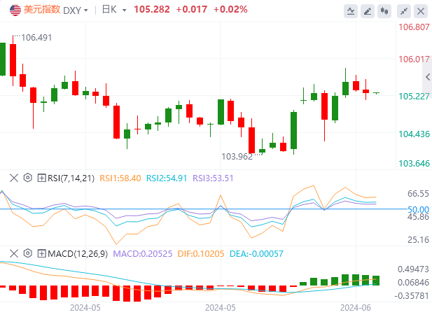 美元指数:截止发稿,美元指数交投于105.28附近。美元指数基本持平,因为交易员对零售销售报告做出反应,该报告显示5月份零售销售环比增长0.1%。分析师预计零售销售将增长0.2%,因此该报告未达到分析师的预期。零售销售(不包括汽车)下降0.1%,而分析师普遍预期为+0.2%。技术面上,如果美元指数跌破50均线105.12,它将向最近的支撑位移动,即104.40-104.60区间。