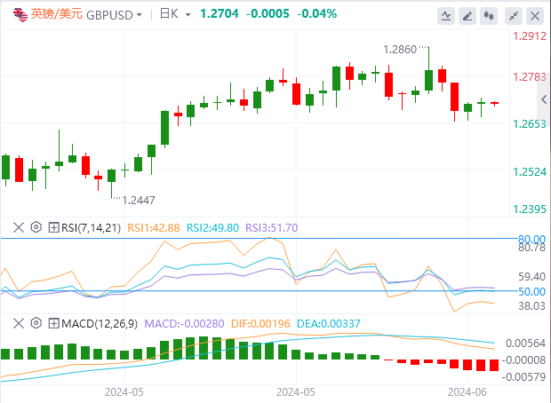 英镑:截止发稿,英镑/美元徘徊于1.2704附近。英镑/美元上周二上涨,收报1.2709,涨幅0.04%。英国央行将于周四召开新的利率电话会议。市场普遍预计英国央行将维持利率在5.25%不变,预计货币政策委员会(MPC)的七名成员将投票决定暂时维持利率不变。预计两名货币政策委员会成员将投票赞成降息四分之一个百分点,与上次会议的投票结果一致。技术面上,如果英镑/美元收于支撑位1.2670下方,它将获得额外的下行动能,并走向下一个支撑位1.2550-1.2575。