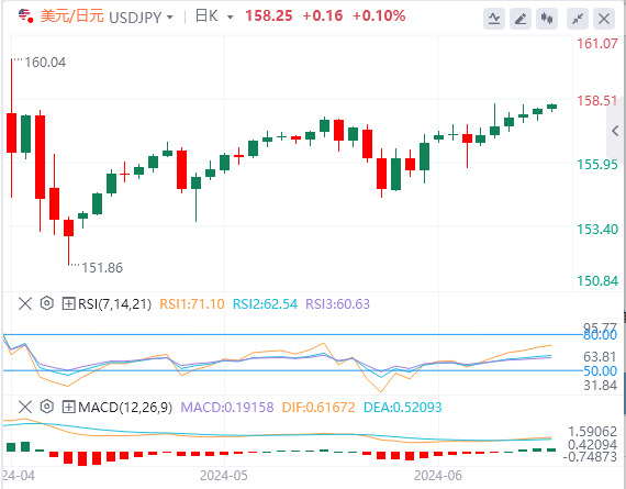 美元/日元周三连续第五天上涨。周四早盘,该货币对继续走高,最后一次交易价格高于158.00。