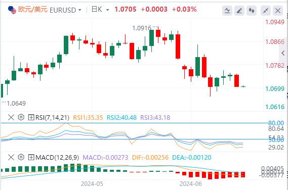 欧元:截止发稿,欧元/美元徘徊于1.0705附近。欧元/美元周四下跌,收报1.0702,跌幅0.40%。5月份,德国生产者价格指数(PPI)环比下降至0.0%,低于之前的0.2%,低于预期的0.3%。与去年同期相比,PPI也低于预期,截至5月的一年中降至-2.2%。尽管年度数据较之前的-3.3%有所改善,但仍低于预期的-2.0%。技术面上,欧元/美元正试图收于支撑位1.0710 – 1.0725下方。如果这次尝试成功,欧元/美元将向下一个支撑位 1.0600 – 1.0620 移动。
