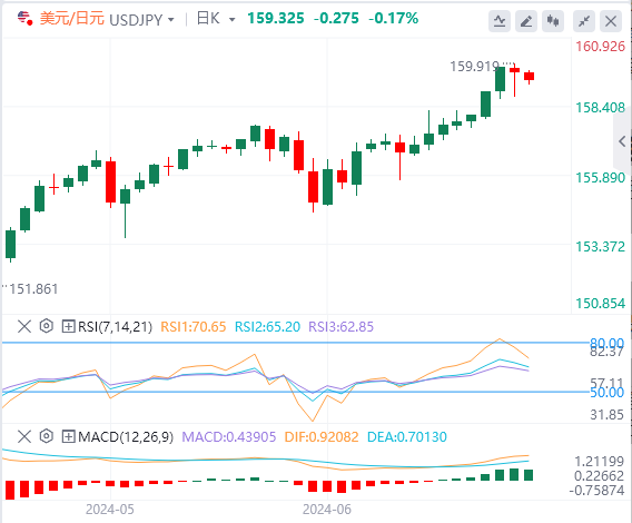 美元/日元在周一触及160.00后回调走低,因为投资者没有押注日元进一步走软,因为对干预的猜测越来越多。日本内阁官房长官林芳正重申,外汇过度波动是不可取的,并补充说,他们将密切关注外汇走势,并在必要时采取必要措施。周二早盘,美元/日元跌破159.50。