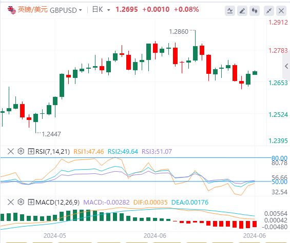 英镑/美元周一上涨至1.2700。周二早盘,该货币对在1.2690附近处于盘整阶段。
