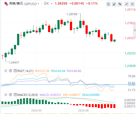英镑/美元在美元重新走强的情况下延续跌势,周三下跌0.5%。该货币对小幅上涨至1.2650。