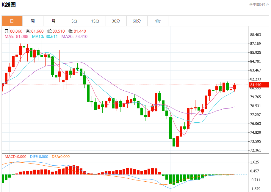 原油市场:截止北京时间20:26,美油上涨,现报81.430,涨幅0.67%。纽市盘前,原油价格以明显的积极性交易,以达到今天早上提到的横盘区间的阻力82.10美元,并且似乎有机会超过这一水平并恢复主要的看涨趋势,以实现达到83.90美元的额外收益。