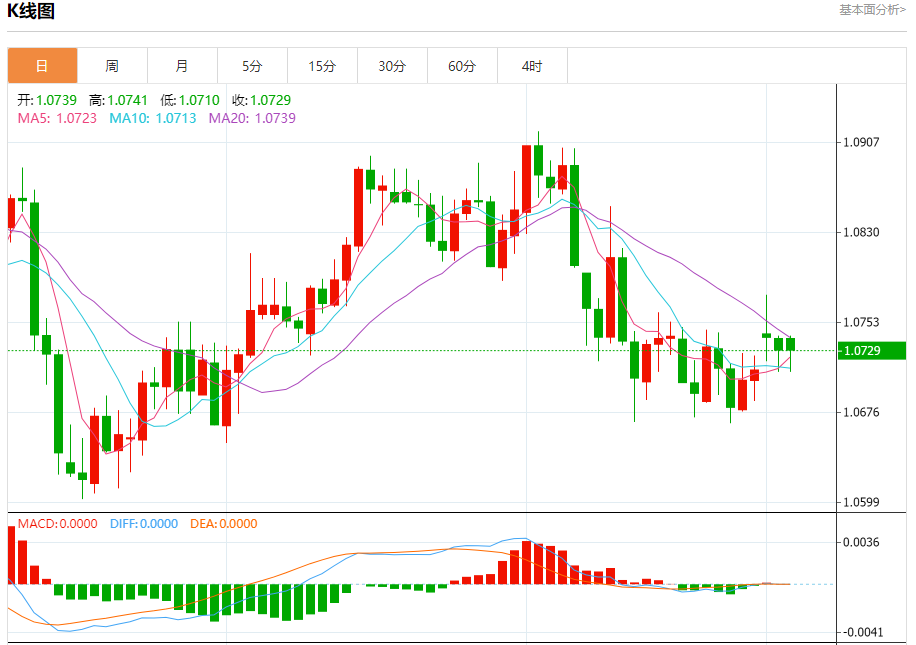 欧元/美元:截止北京时间20:26,欧元/美元下跌,现报1.0730,跌幅0.11%。纽市盘前,欧元兑美元价格持续下跌,超过EMA50,并确认了今天剩余时间内熊市趋势的持续,等待访问1.0675美元作为第一站,注意突破该水平将推动价格到1.0600美元作为下一个主要目标。