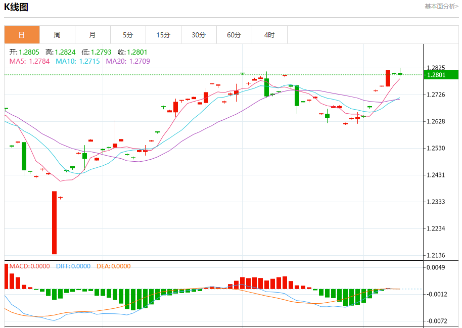 英镑/美元:截止北京时间20:21,英镑/美元下跌,现报1.2803,跌幅0.03%。纽市盘前,GBPUSD价格停留在1.2800美元附近,正如我们今天早上提到的,价格需要保持在这个水平以上,以继续今天的预期上涨,目标是1.2890美元,作为下一个主站,注意EMA50继续支持建议的牛市。