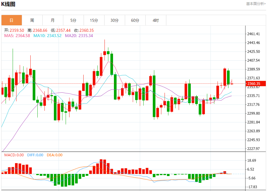 现货黄金:截止北京时间20:21,现货黄金上涨,现报2360.33,涨幅0.05%。纽市盘前,从早上开始,黄金价格显示出疲软的交易,而随机指标继续提供积极的信号,等待激励价格恢复今天预期的看涨趋势,提醒你我们的下一个主要目标达到2400.00美元,而保持在2340.10美元上方是继续建议上涨的主要条件。