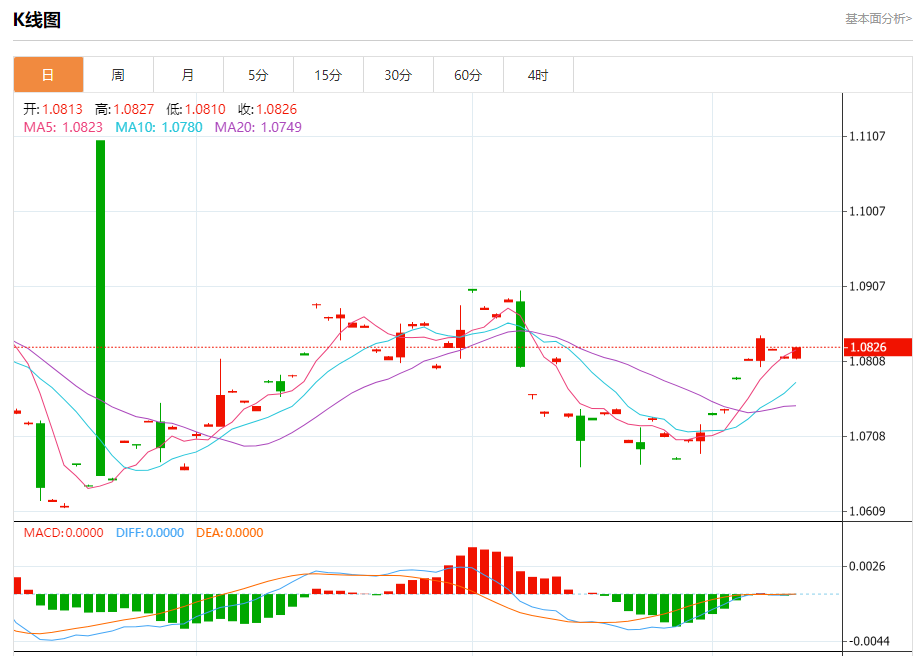 欧元/美元:截止北京时间20:21,欧元/美元上涨,现报1.0828,涨幅0.13%。纽市盘前,自上午以来,欧元兑美元价格小幅波动,等待进一步上涨以测试1.0840美元,1.0840美元是对建议牛市的关键障碍,其目标是在超过前一水平后延伸至1.0915美元。