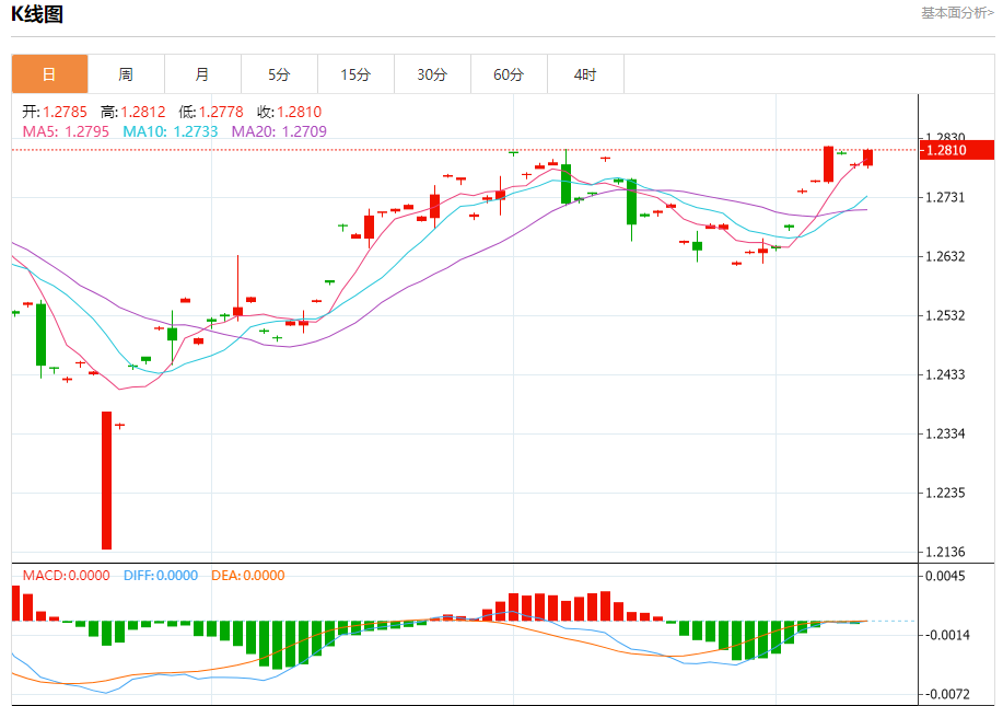 英镑/美元:截止北京时间20:21,英镑/美元上涨,现报1.2812,涨幅0.19%。纽市盘前,GBPUSD价格现在显示积极的交易,试图突破图表上出现的看涨旗形的阻力线,等待推动价格继续上涨,并达到我们的主要预期目标1.2890美元。