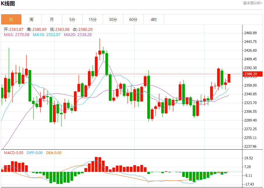 现货黄金:截止北京时间20:21,现货黄金上涨,现报2380.44,涨幅0.71%。纽市盘前,黄金价格现在显示出更多的看涨倾向,加强了对未来几个交易日继续看涨趋势的预期,为访问2400.00美元铺平了道路,这代表着我们的下一个目标,注意到突破它将推动价格向2450.00美元的历史高点发展。