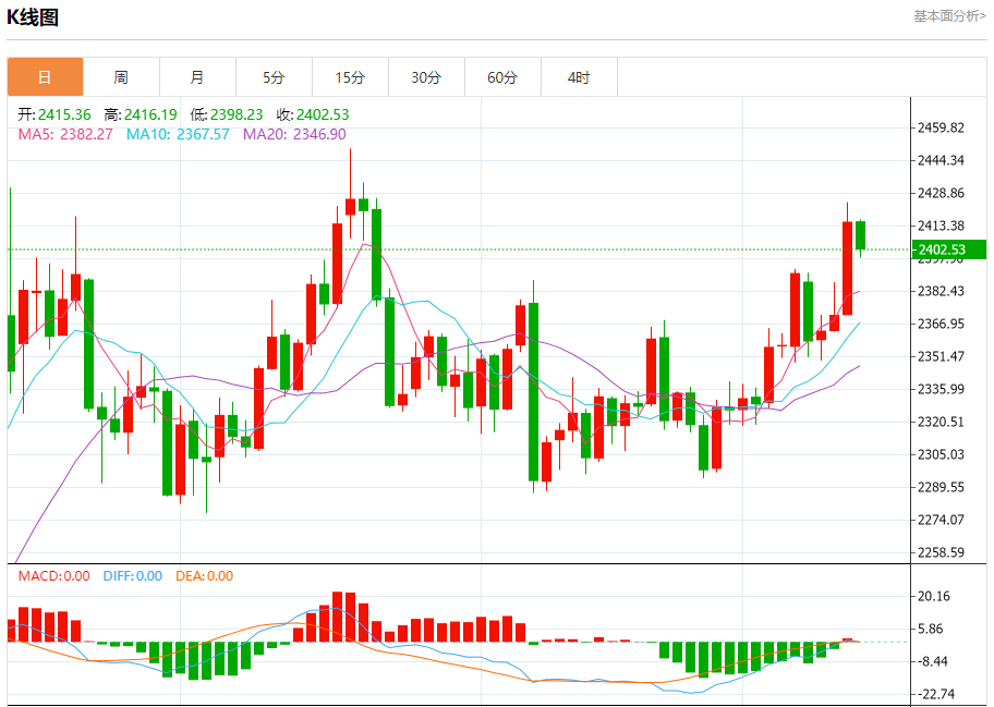现货黄金:截止北京时间20:17,现货黄金下跌,现报2402.79,跌幅0.51%。纽市盘前,黄金价格显示出轻微的看跌倾向,以测试2400.00美元的障碍,价格需要保持在这一水平以上,作为牛市延续的首要条件,因为突破这一水平代表着面临额外负面压力的关键,主要目标是访问2340.10美元。