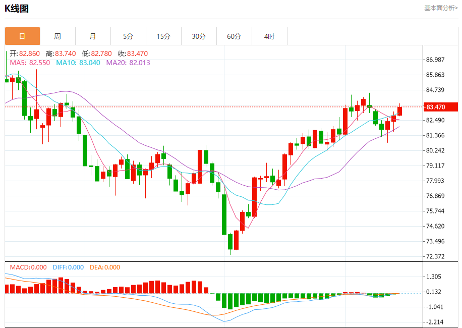 原油市场:截止北京时间20:17,美油上涨,现报83.470,涨幅1.03%。纽市盘前,原油价格恢复牛市,以确认其受双底模式的影响,并在当天剩余时间内实现更多上涨,测试84.68美元作为下一个目标的道路是开放的,注意到突破它将推动价格向86.00美元前进,作为下一个积极的站。