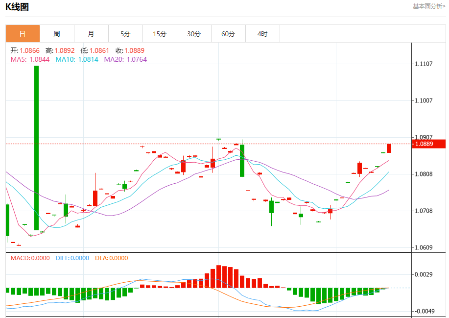 欧元/美元:截止北京时间20:17,欧元/美元上涨,现报1.0891,涨幅0.21%。纽市盘前,欧元兑美元价格恢复积极交易,接近我们等待的目标1.0915美元,等待更多的上涨超过这一水平,并实现额外的收益达到1.0980美元。