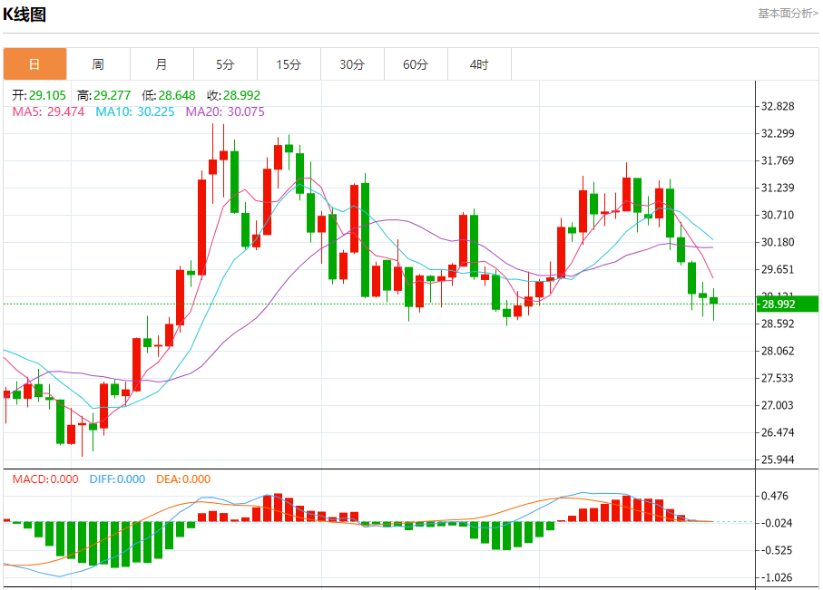 现货白银:截止北京时间20:26,现货白银下跌,现报28.994,跌幅0.41%。纽市盘前,白银价格提供了新的负面交易,以达到28.55美元的等待目标阈值,注意到随机指标负重叠,以支持实现更多下跌的机会,并打破上述水平,为访问27.62美元作为下一个主站开辟道路。