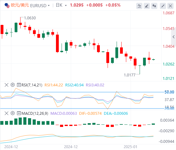 欧元:截止发稿,欧元/美元徘徊于1.0295附近。欧元/美元周四下跌,收报1.0290,跌幅0.18%。美国12月消费者物价指数(CPI)通胀数据低于预期,增加了美联储(Fed)今年降息两次的押注,拖累美元。然而,对欧元区经济增长的担忧可能会限制这一主要货币对的上行空间。技术面上,欧元/美元最近的支撑位位于1.0235–1.0250区间。跌破1.0235水平将为测试下一个支撑位1.0100–1.0115开辟道路。