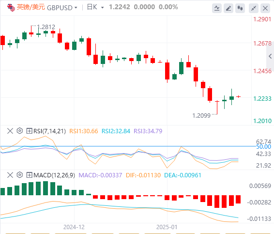 英镑:截止发稿,英镑/美元徘徊于1.2242附近。英镑/美元上周四上涨,收报2242,涨幅0.22%。在英国公布12月CPI报告后,英镑周三大幅反弹,该报告显示通胀压力温和增长。技术面上,英镑/美元正试图回到1.2200–1.2215的支撑位下方。如果这次尝试成功,英镑/美元将走向下一个支撑位,即位于1.2080–1.2100区间。