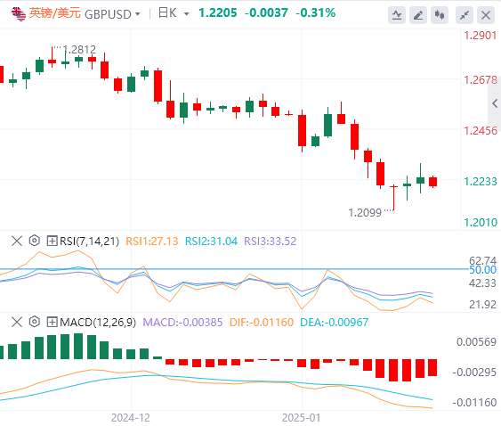 英镑保持卖盘基调,英镑/美元在1.2200附近震荡,交易者消化令人失望的英国11月国内生产总值(GDP)和工业生产数据。英国经济11月按月增长0.1%,低于预期的+0.2%。其他数据显示,英国11月工业和制造业生产分别下降0.4%和0.3%。这两项数据均低于市场预期。