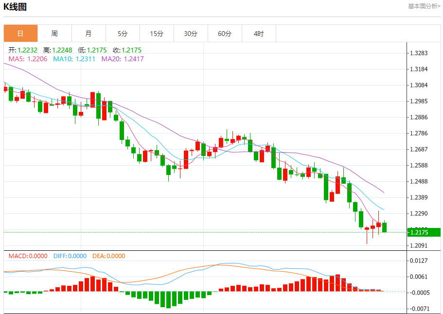 英镑/美元:截止北京时间21:26,英镑/美元下跌,现报1.2178,跌幅0.46%。纽市盘前,GBPUSD价格正在测试图表上出现的熊市标志的支撑线,等待突破1.2185美元的水平,以确认向我们预期的1.2045美元的负面目标反弹。