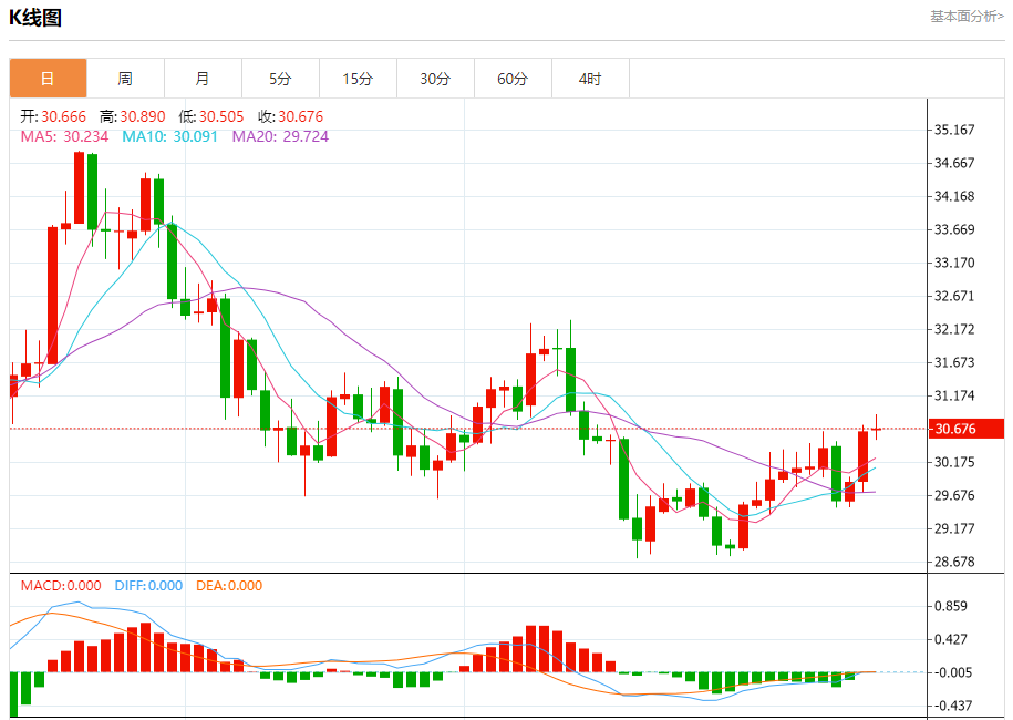 现货白银:截止北京时间21:26,现货白银上涨,现报30.676,涨幅0.13%。纽市盘前,白银价格设法突破30.63美元,以确认未来几个交易日看涨趋势的延续,开辟了走向31.63美元的道路,作为下一个正站,注意到EMA50支持建议的牛市,这将在价格稳定在30.63美元以上的条件下保持有效。